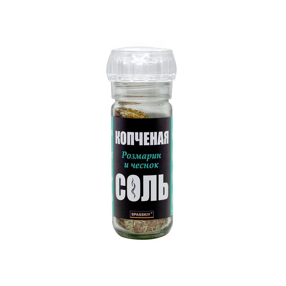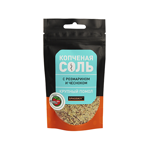 Соль пищевая копченая (помол№1), зелень сушеная (розмарин), чеснок порошок, экстракты специй