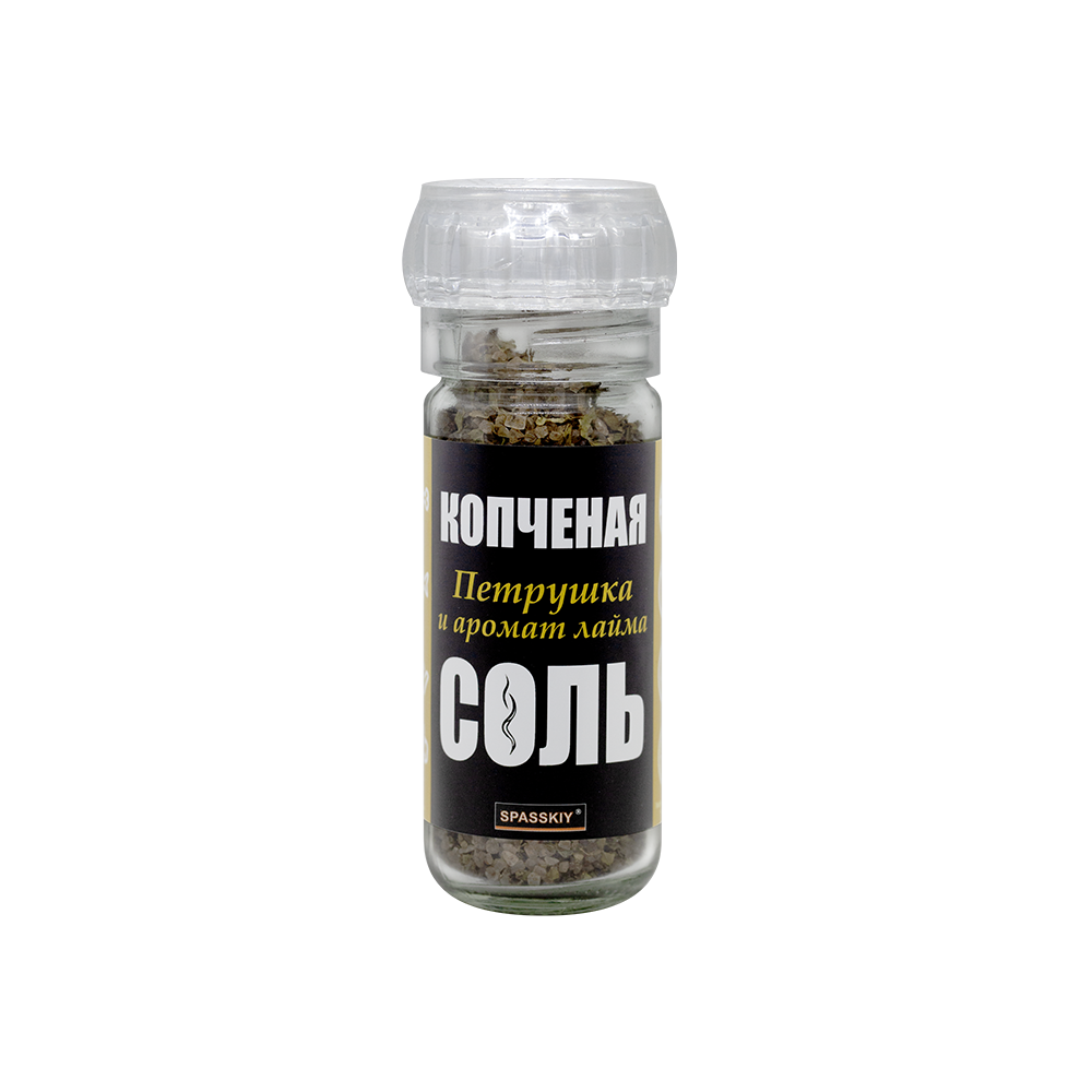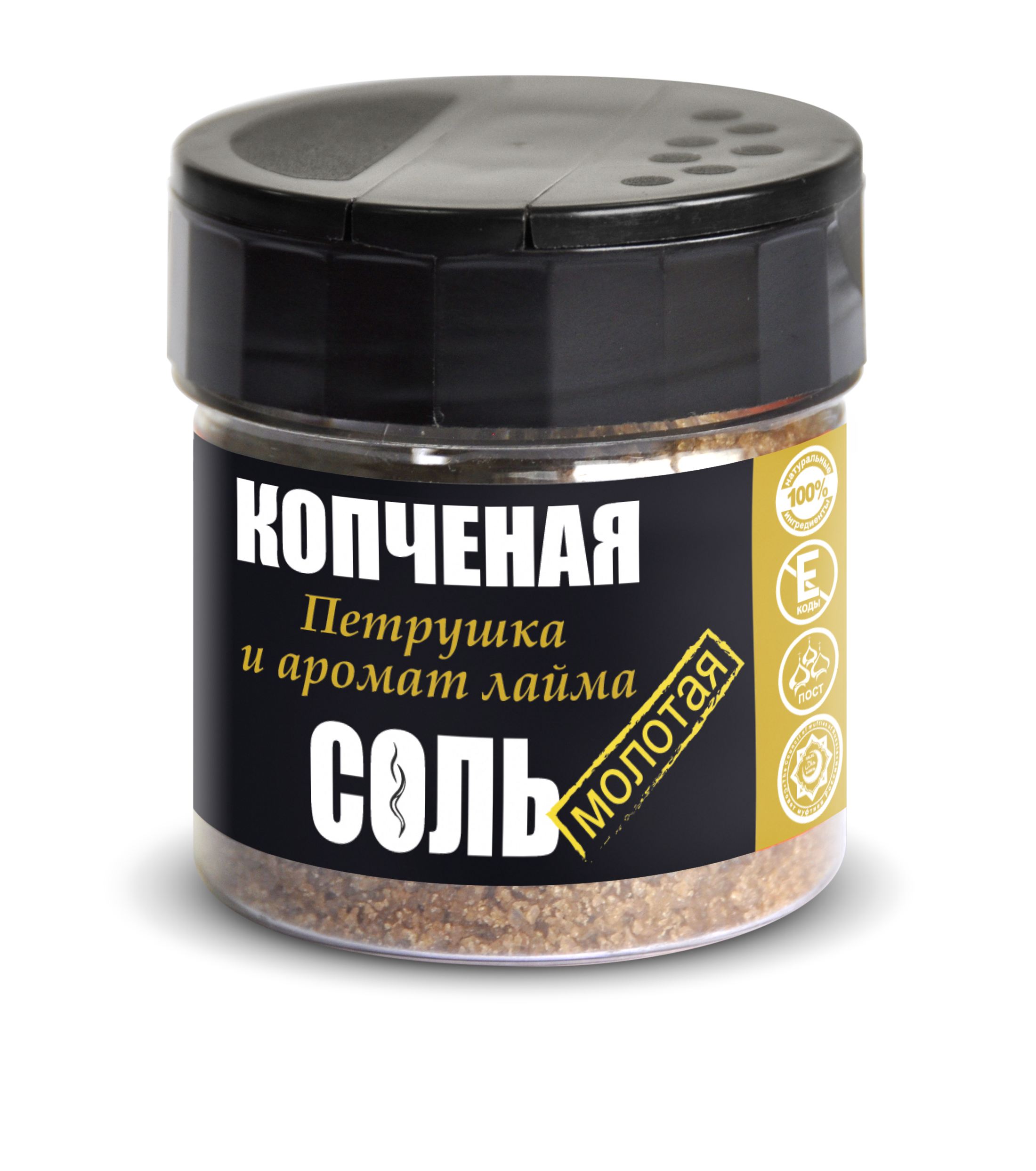 Соль пищевая копченая (помол№2, крупная), зелень сушеная (петрушка), чеснок, натуральный ароматизатор (Лайм), экстракты специй.